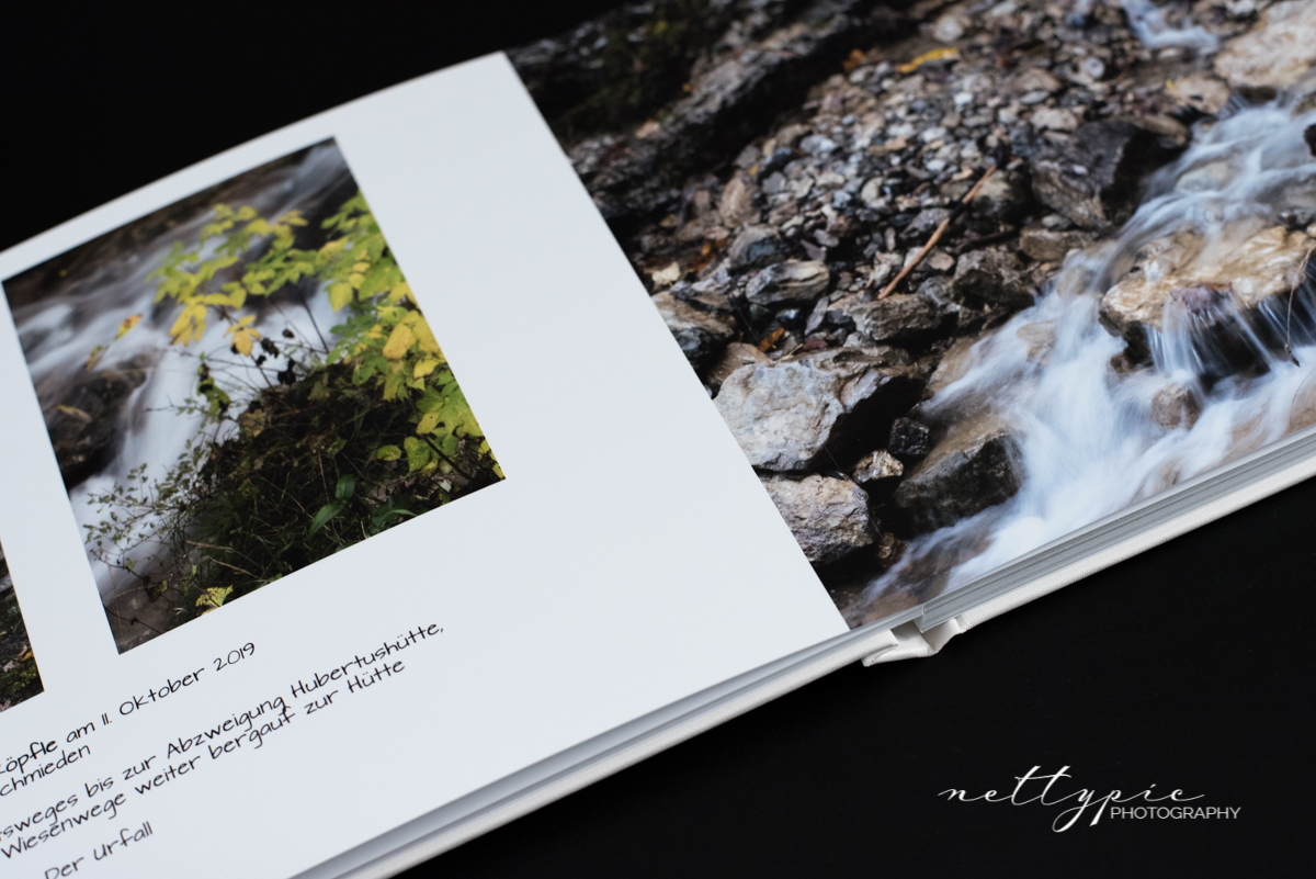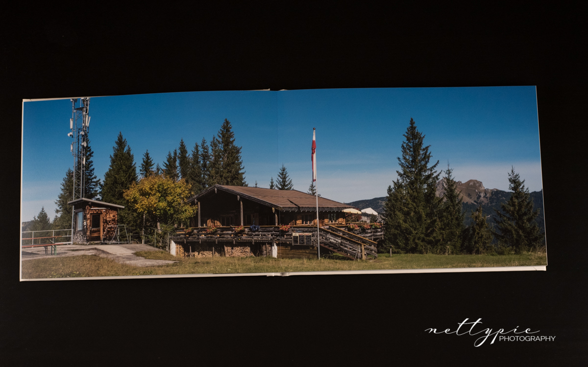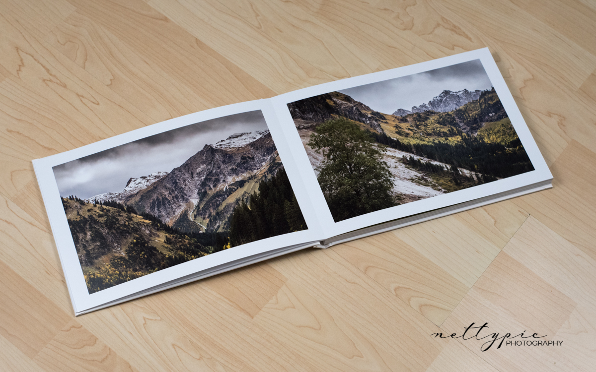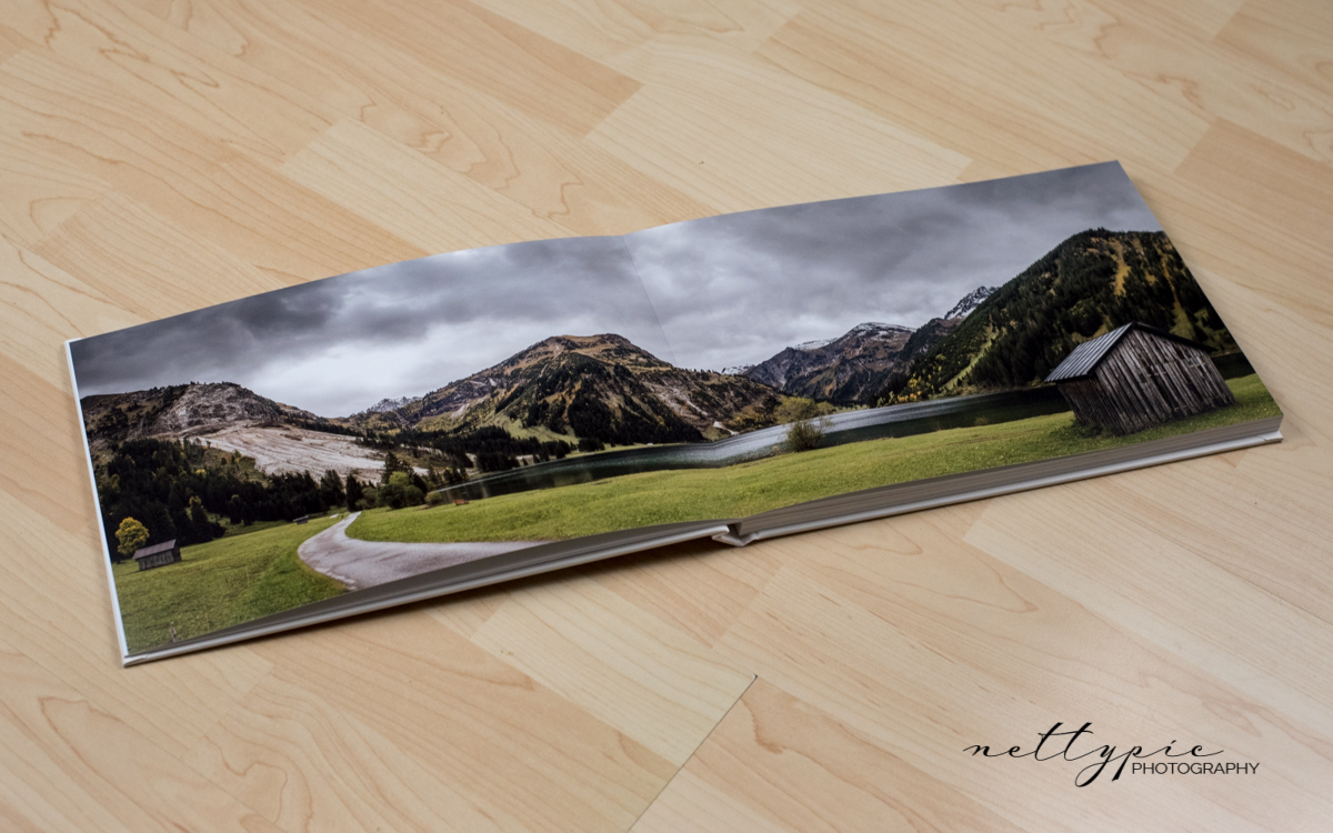 Darüber hinaus wird eine Warnung angezeigt, falls Fotos oder Textfelder falsch platziert werden, was zu später zu unschönen weißen Rändern führen könnte. Die Bilder müssen immer entweder in ausreichendem Abstand an oder über die Beschnittlinie platziert werden. Sehr gespannt war ich darauf, wie Panoramafotos über zwei Seiten im fertigen Buch aussehen würden, da Saal Digital mit einer Layflat-Bindung ohne störenden Falz in der Buchmitte wirbt.