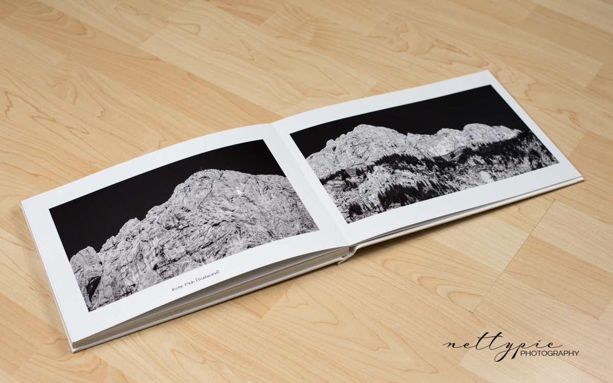Bereits nach fünf Tagen wurde das Fotobuch (sicher verpackt in Polsterfolie plus stabilem Karton) geliefert. Durch die schlichte Covergestaltung wirkt das Produkt meiner Meinung nach sehr edel; die einzelnen Seiten sind relativ dick und zeichnen sich durch eine wertige Haptik aus. Der matte Fotodruck weist einen dezenten Schimmer auf, was mir sehr gut gefällt; auch die Farben wirken natürlich und weder zu grell noch zu matt. Die Layflat-Bindung hat mich trotz vorheriger Skepsis ebenfalls überzeugt – es verläuft keine Trennung oder Linie durch ein Foto, welches über zwei Seiten platziert wird (siehe Beispielfotos). Hinsichtlich Schärfe, Kontrast und Details weiss das Fotobuch ebenfalls zu überzeugen, so dass meine Erwartungen voll und ganz erfüllt wurden.