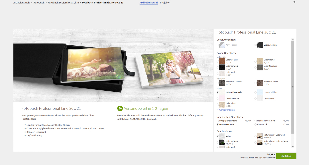 Im Dezember habe ich mich bei Saal Digital via Instagram beworben, an dem Professional Line Erfahrungsbericht teilzunehmen. Durch den Gutschein, den ich zwei Tage später zusammen mit der Zusage per Mail erhielt, reduzierte sich der Preis für mein Fotobuch um 100 Euro. Dabei handelt es sich um das folgende Produkt: