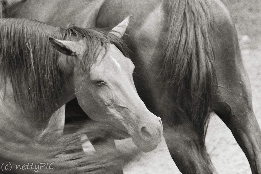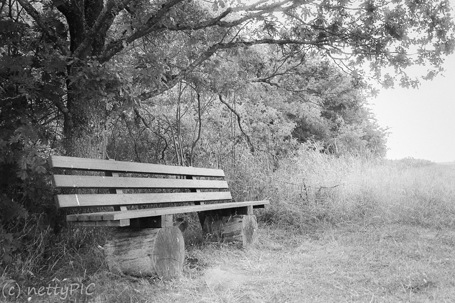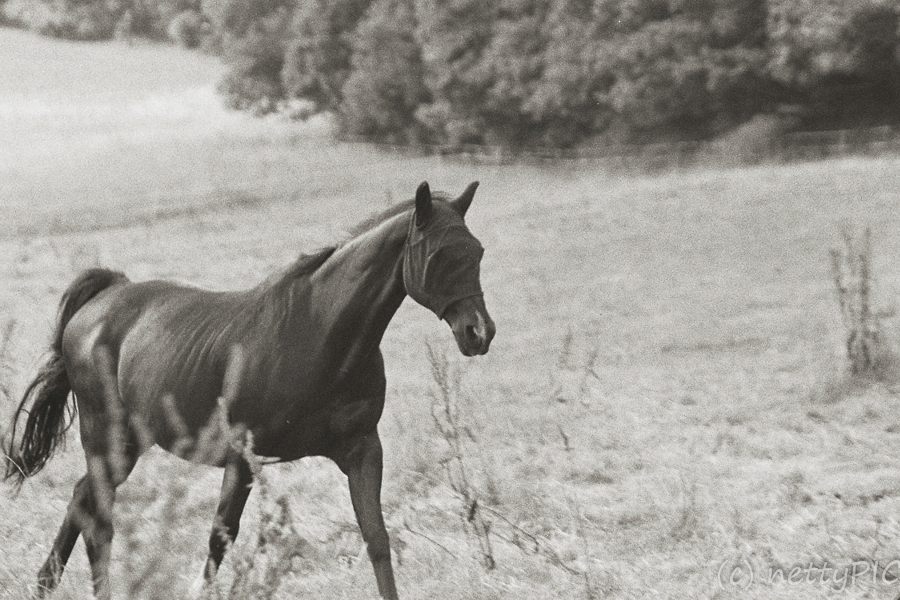 Die Fotos sind bis auf das letzte Bild mit der Bank unbearbeitet, das dritte Foto mit dem trabenden Pferd ist nur am rechten und oberen Bildrand etwas zugeschnitten. Bei dem letzten Bild habe ich den Lightroom-Infrarotfilter angewendet und etwas Vignette zugefügt. Übrigens war ich positiv überrascht, dass die Lightroom-Farbfilter doch eine Wirkung auf die analogen S/W-Fotos hatten; ebenso lässt sich natürlich noch nachträglich eine Tonung hinzufügen.