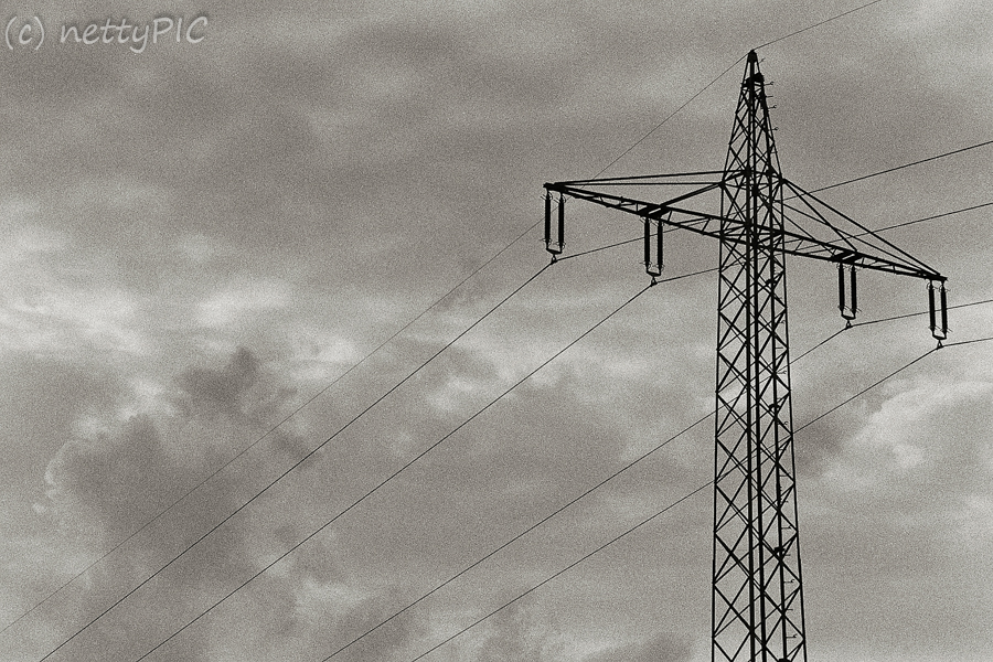 Heute möchte ich einige „Testergebnisse“ meines ersten Versuchs mit einem „echten“ Schwarz-Weiss-Film zeigen. Wie man auf dem Bild erkennen kann, handelte es sich um einen Film mit einer Lichtempfindlichkeit von ISO 400 – die Körnung ist auf den Fotos erwartungsgemäß sehr deutlich zu erkennen, besonders auf dem Foto mit dem Strommast.