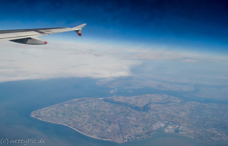 Letzte Woche bei meinem Flug nach London machte ich natürlich auch Fotos aus dem Flugzeugfenster heraus – obwohl dieses nicht gerade sauber und im unteren Bereich etwas milchig war, sind die Fotos besser als erwartet geworden. Beim Fotografieren versuchte ich, die Kamera in einem günstigen Winkel zur Scheibe zu halten, damit man die Schlieren nicht so sieht und beim Bearbeiten der Fotos musste ich den Kontrast nacharbeiten; seltsamerweise war jedoch keins der Bilder verwackelt….
