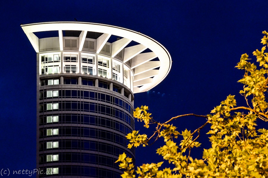 Der Westend Tower mit seiner hellen Fassade aus Granit und dem halbkreisförmigen Strahlkranz an der Spitze gefällt mir architektonisch besonders gut. Laut Wikipedia ist er mit 208 Metern der dritthöchste Wolkenkratzer in Frankfurt und sogar ganz Deutschland; die elf Strahlen sollen einen Hinweis auf Frankfurt als Krönunngsstadt deutsche Kaiser geben und ragen elf Meter über die Fassade hinaus.