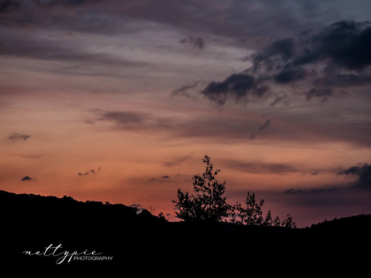 Schon hundertmal gesehen (und oft fotografiert), aber doch jedes Mal wieder faszinierend und einzigartig, so dass ich eine ganze Weile oben geblieben bin und den Himmel beobachtet habe. Beim letzten Foto (dafür hatte ich noch das Stativ geholt, um etwas länger belichten zu können) hatte er sich bereits wieder beruhigt. Auch die Amseln, die kurz zuvor noch lautstark ihr Abendkonzert veranstaltet hatten, erstummten irgendwann…der Tag neigte sich dem Ende und in der Natur kehrte allmählich Ruhe ein.