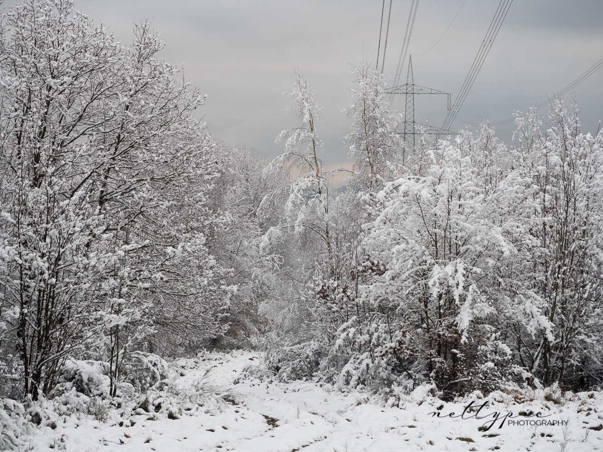 eine wunderschöne Lichtung, bei der mir der Strommast bzw. die Leitungen zunächst störend erschienen. Also blieb mir nichts anderes übrig, als sie auf den Fotos mit einzubauen, wobei mir die Ergebnisse letztlich doch besser gefielen als zunächst angenommen 😉