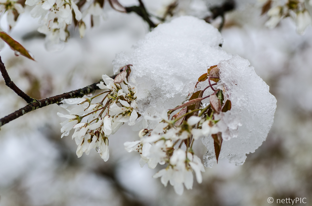 …zumindest für einige Stunden – heute vormittag hat es tatsächlich geschneit und für kurze Zeit war am Ostermontag alles weiß. Da ich allerdings den letzten freien Tag zum Ausschlafen genutzt habe, hat es nur für ein paar schnelle Garten-Makros gereicht, bevor wieder alles weggetaut war.