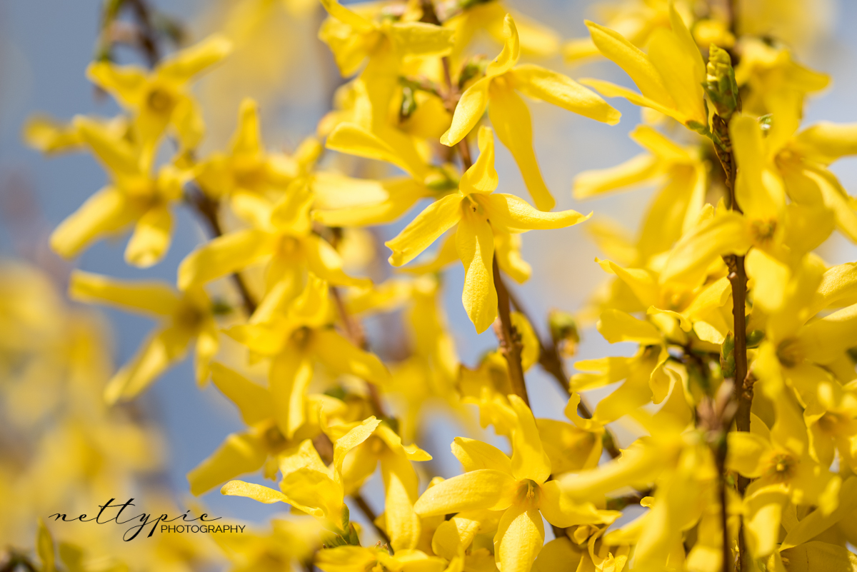 Nachdem unsere Forsythien letztes Jahr kaum geblüht haben, leuchten sie dieses Jahr ganz besonders schön und bieten einen tollen Kontrast zu dem blauen Himmel. Nach dem vielen Grau der letzten Monate kann ich mich an dem knalligen Gelb gar nicht satt sehen 😉 .