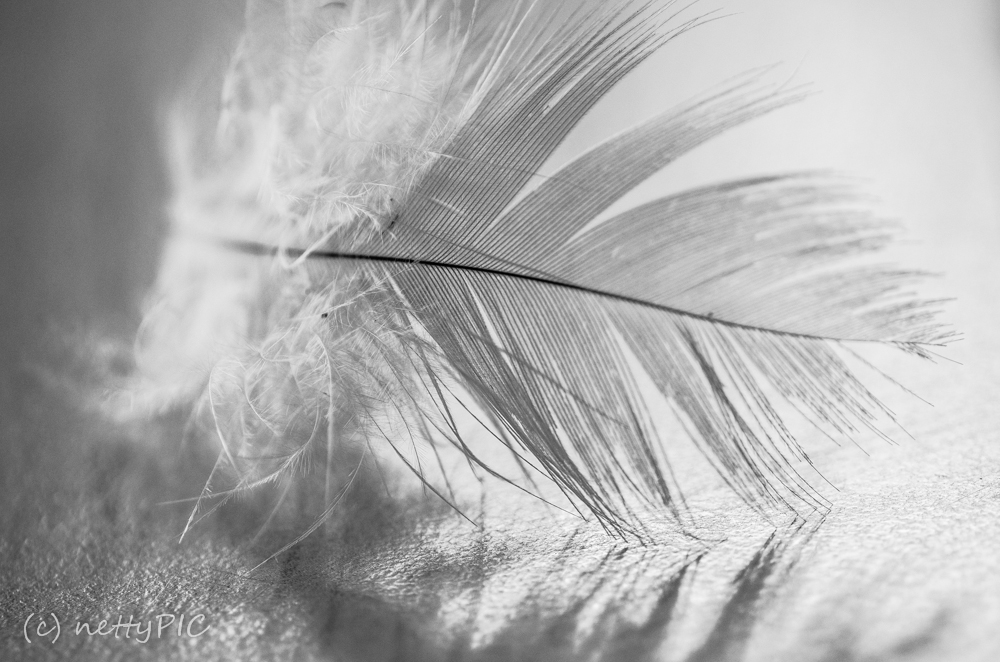 Die Feder war eigentlich auch ein Zufallsbild: Sie flog so herum und ich dachte, dass sie auf einem Foto bestimmt interessant aussehen würde…ich hatte sie auf das Laminat gelegt, damit sie sich etwas spiegelt.