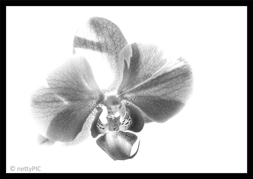 Mein September-Beitrag für das Black and White Fotoprojekt ist dieses Mal eine Orchidee, die in natura pinkfarbig ist. Obwohl die Farbe der Blüte wirklich toll ist, gefällt sie mir als S/W-Foto fast noch besser als im Original.