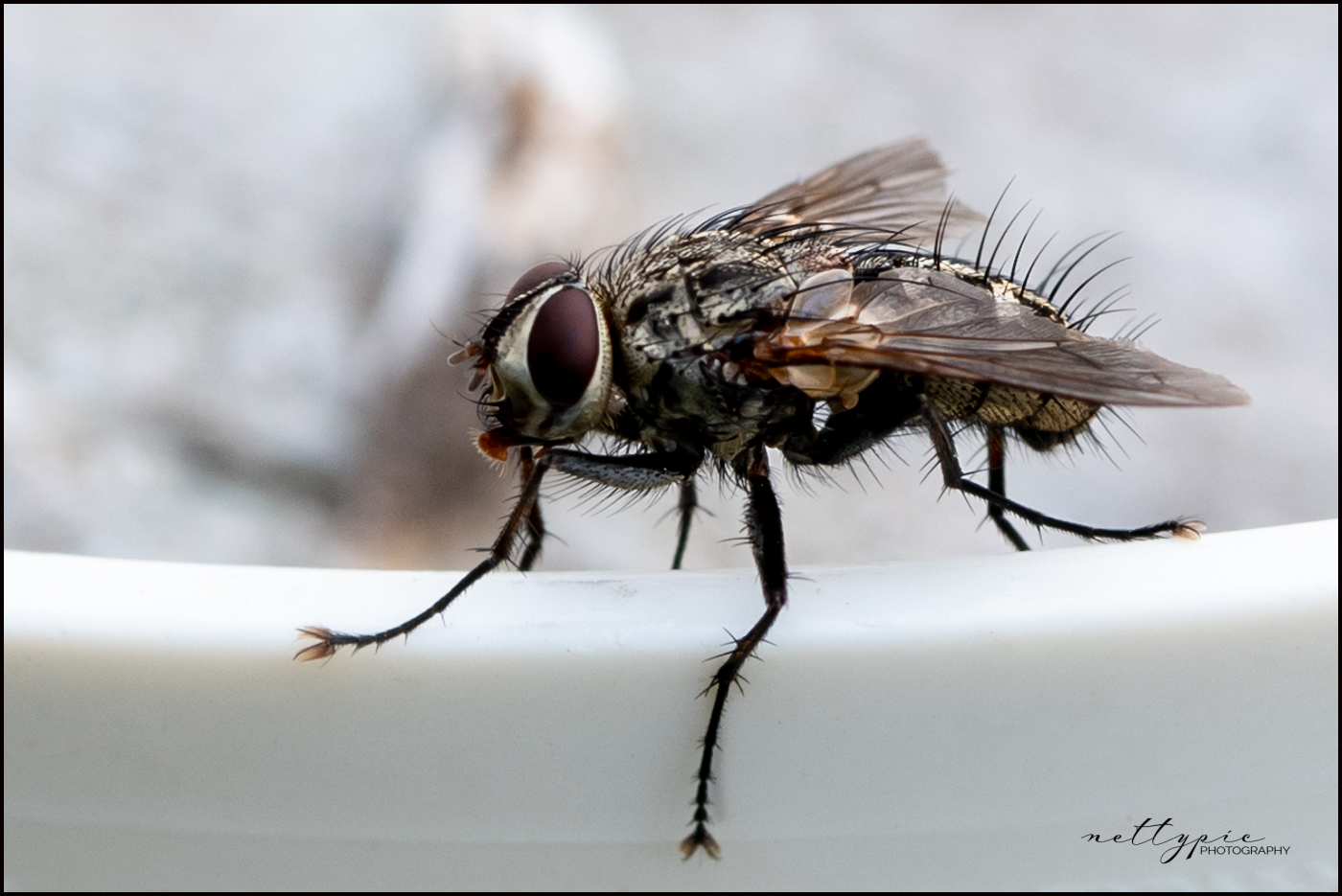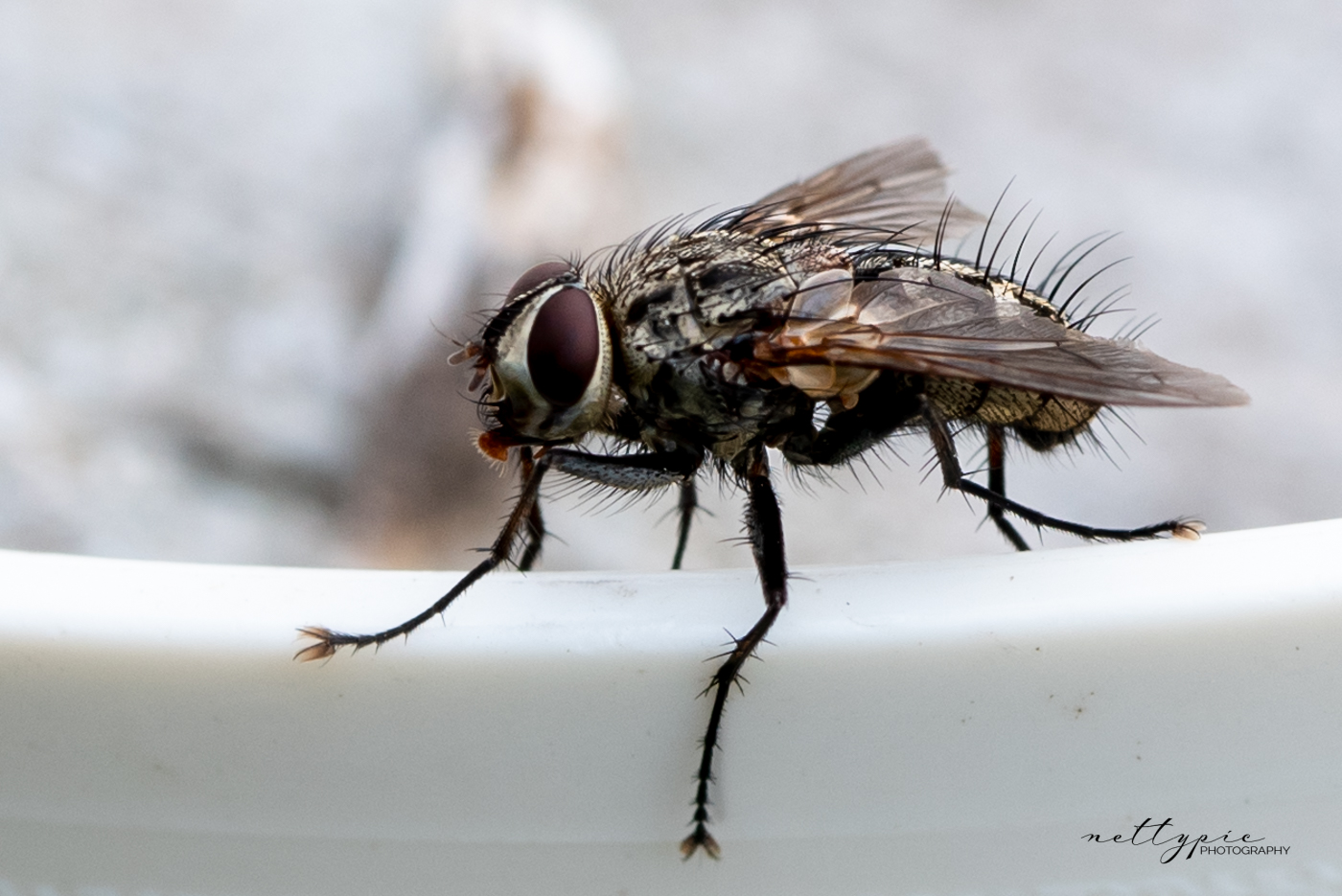 Noch eine Schmeißfliege – gesehen an der Wasserschale im Garten, die ich für Vögel und Insketen aufgestellt habe.