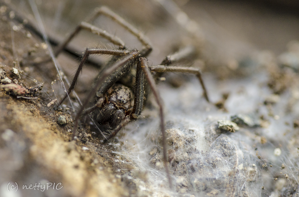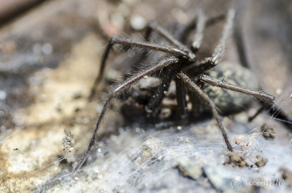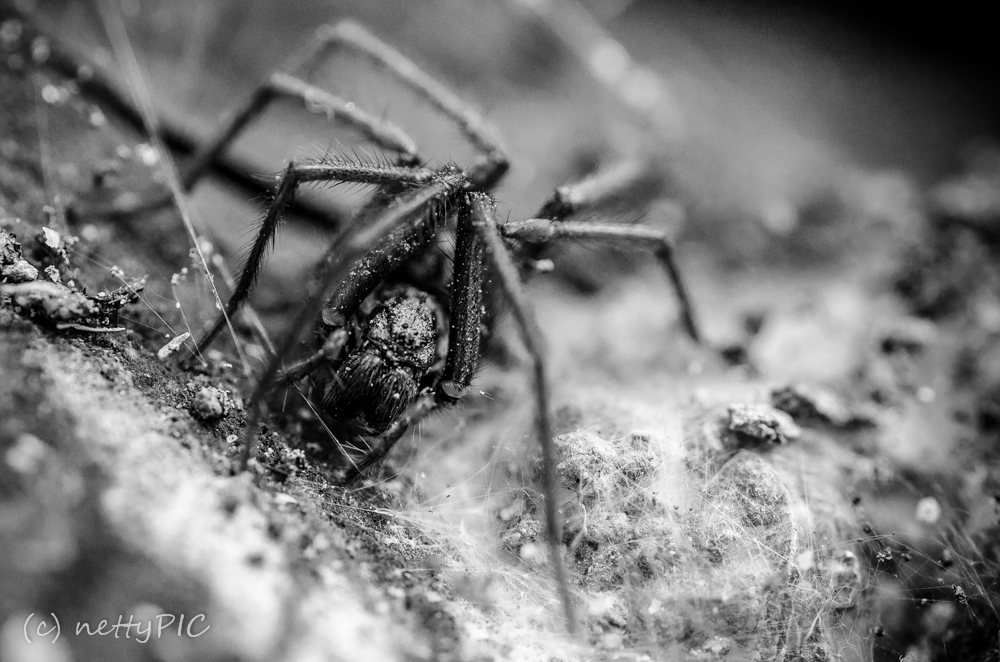 Mir gefallen eigentlich alle beiden Varianten sehr gut. Ich mag ja Spinnen überhaupt nicht, wer mag die schon 😉 Aber so nah fotografiert, sind auch sie sehr interessant, wie z.B. die feinen Haare an den Beinen! Schön, dass man auch das Spinnennetz sieht!