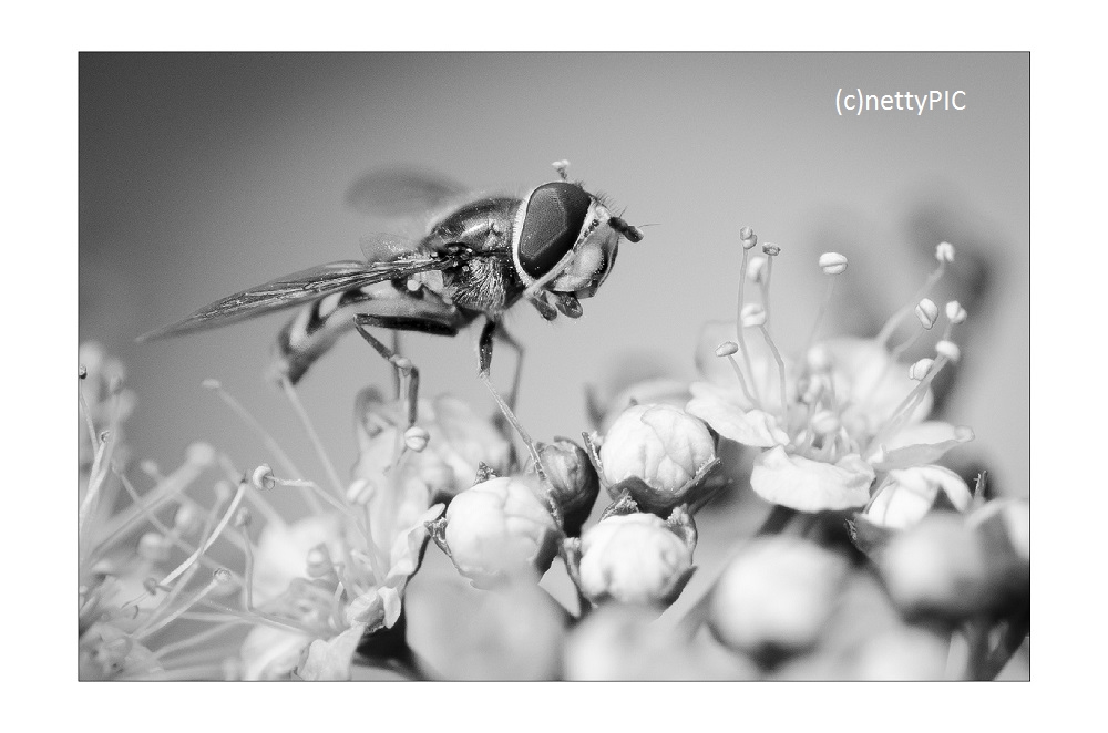 ursprünglich wollte ich die Schwebfliege farbig lassen, aber dann gefiel mir S/W doch wieder besser 😉