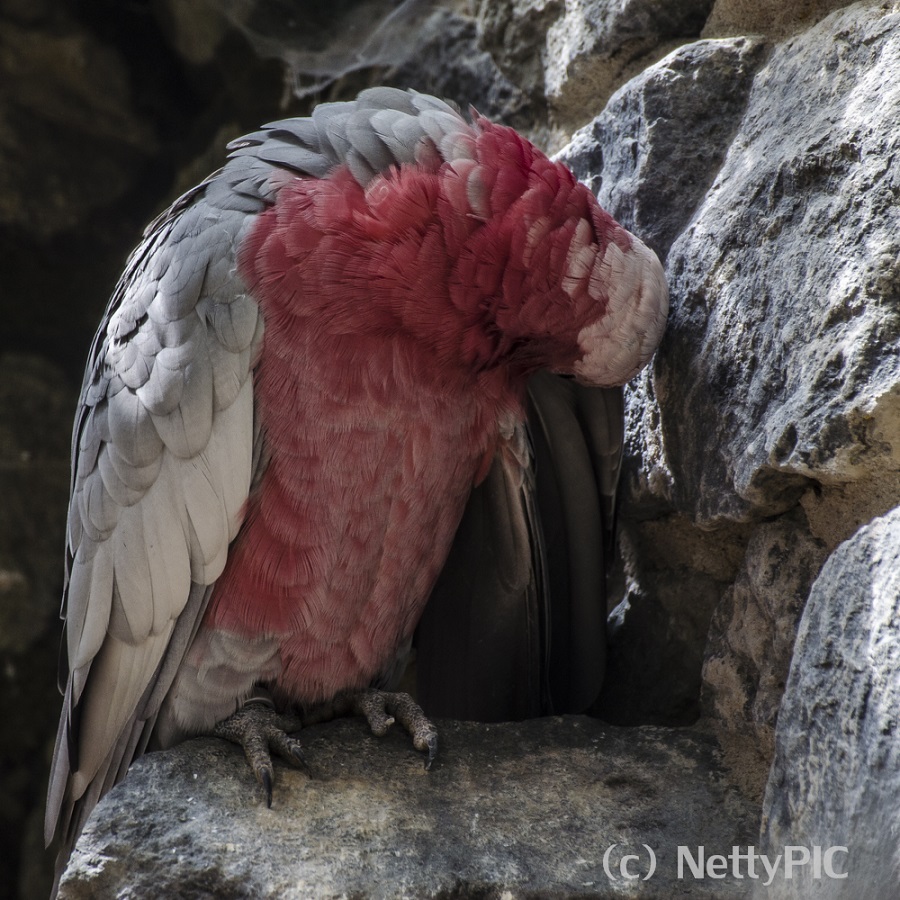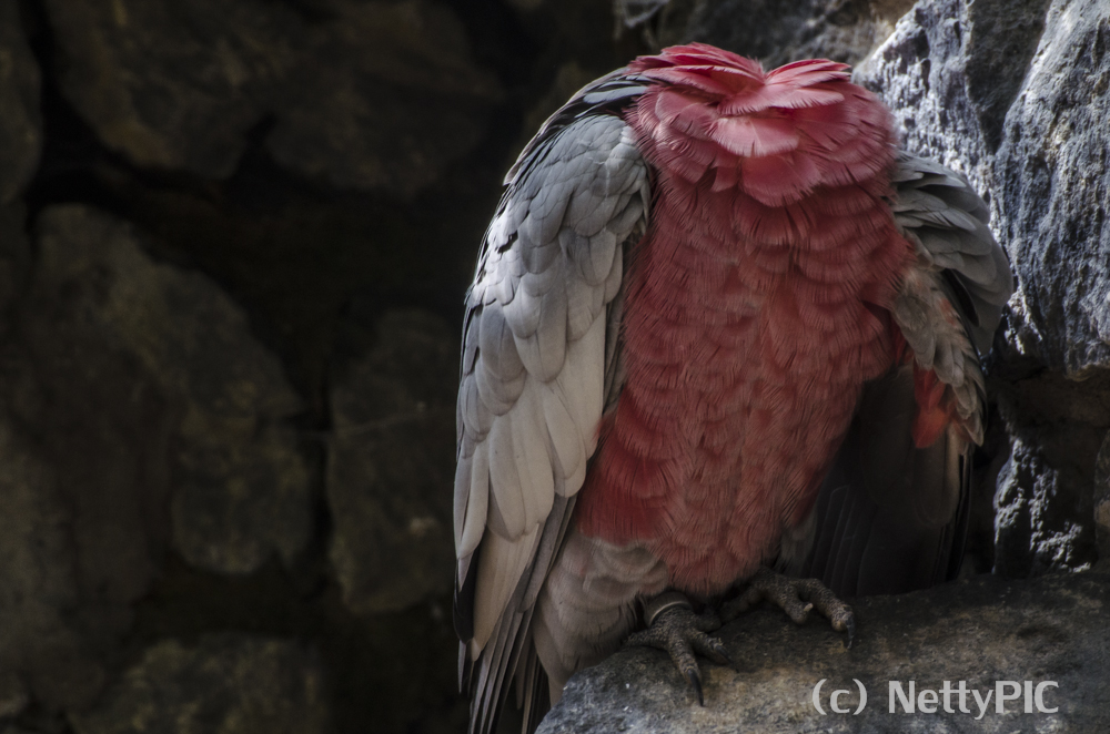Keine Panik, der ist natĂŒrlich noch dran – der Rosakakadu war nur gerade bei der Gefiederpflege und wollte sich wohl nicht von mir fotografieren lassen đ