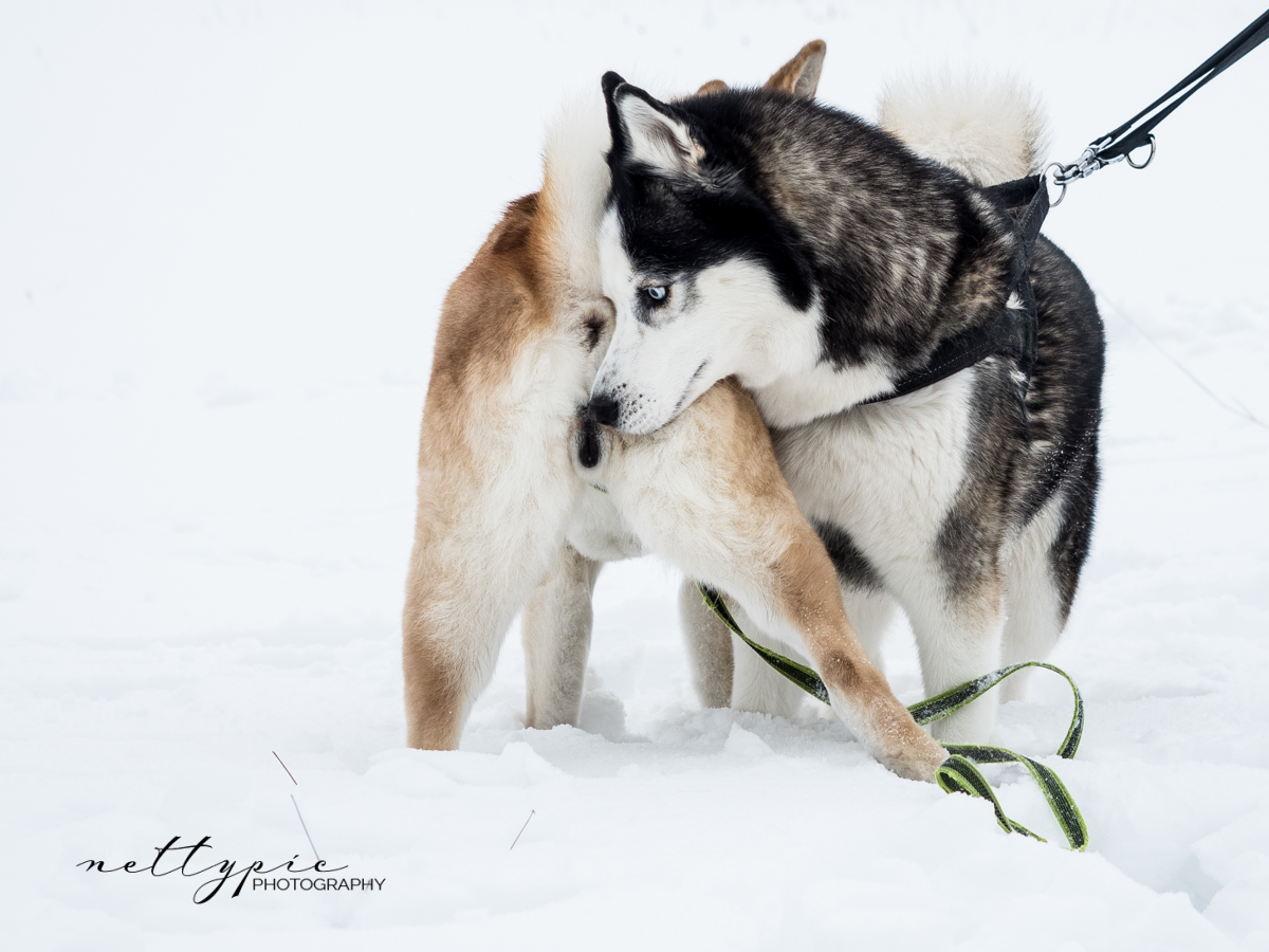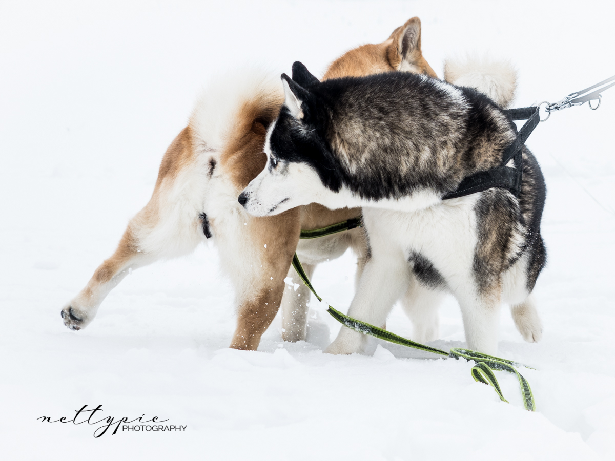 Als wir eintrafen, standen die Menschen im Startbereich bereits dicht gedrängt, so dass ich dort leider nicht die Gespanne von vorne beim Start fotografieren konnte. Im Zieleinlaufbereich war hingegen weniger los, wehalb wir uns hauptsächlich dort aufhielten. Auch am Rande des Geschehens ergaben sich Gelegenheiten, die wunderschönen Tiere zu fotografieren – besonders spannend war die Begegnung zweier Hunde, die sich erst beschnupperten und dann…Action 😉