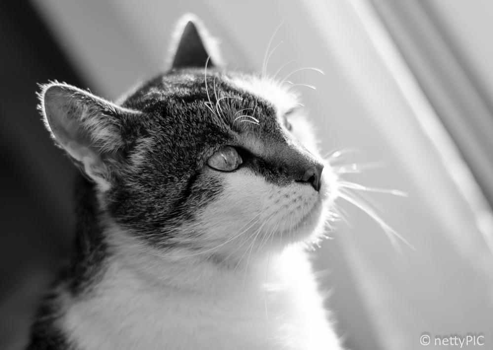 Der Kater schaut aus dem Fenster und „guckt spazieren“, weil es ihm draussen zu ungemütlich war 😀