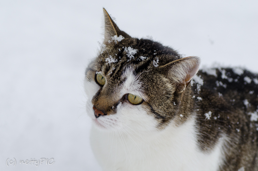 Ich mag Schnee nicht und die Sonne, Strand und Meer gefällt mir besser und so wie es momentan ausschaut bleiben wir im Ruhrgebiet auch noch verschont davon. Na ja immerhin hat Schnee auch was gutes und Du hast ein schönes Foto mehr, aber so wie die Katze schaut steht die auch nicht auf Schnee. 🙂