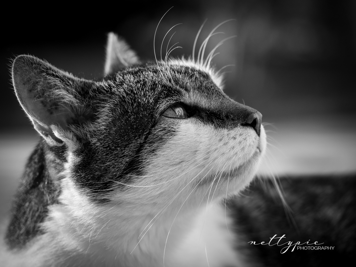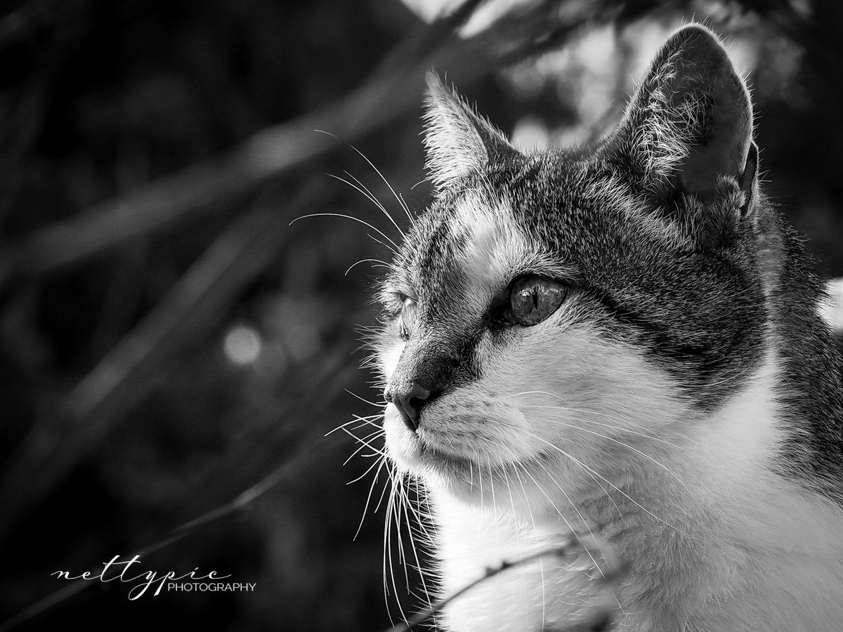 Wenn du gerade am Boden liegst, um Blümchen zu fotografieren und dann der Kater hinter den Büschen auftaucht…